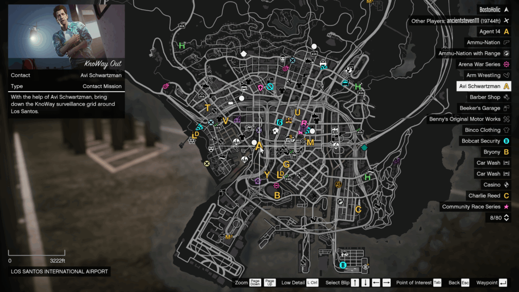 حال باید تمام این ماموریتها را به پایان برسانید. بهطور کلی ۵ ماموریت از سوی Avi Schwartzman به شما داده خواهد شد. پس از اتمام هر ماموریت، شما باید به لوکیشن جدیدی بروید که با حرف A روی مپ بازی مشخص شدهاند. حال اگر هر ۵ ماموریت را به پایان برسانید، قادر به ملاقات با مایکل خواهید بود.