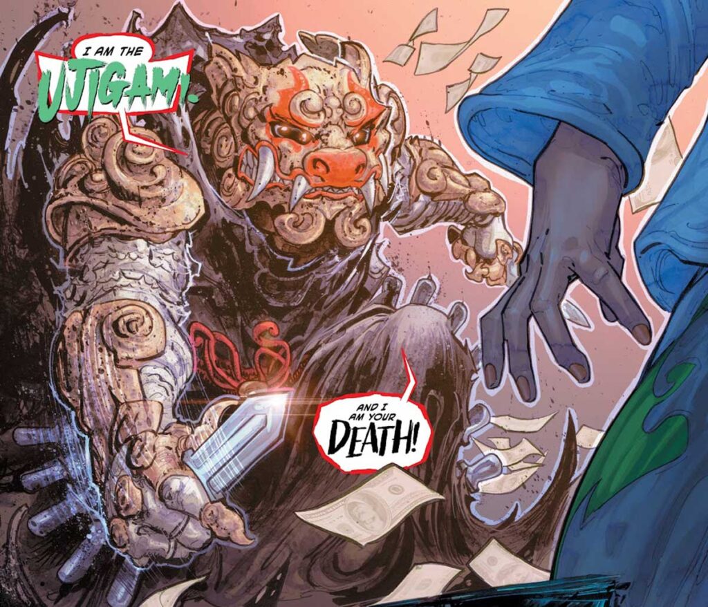 بدین گونه، جین لوئن یانگ و فردی ای. ویلیامز دوم از تیم خالق نو زمینه مناسبی برای پیش برد داستان خود به دست آوردند. آنها نیز زمان را هدر ندادند و در شماره سیزدهم، اوجیگامی مرموز و ماسکدار را به نمایش کشیدند که وارد یک جلسه تثلیث شد و رهبر گروه گوست بویز را به قتل رساند. لاکپشتهای نینجا به تحقیق درباره این قتل پرداختند و متوجه پیوندهایی بین تثلیثها و بکستر استاکمنی شدند که اکنون در جایگاه شهردار نیویورک قرار گرفته است.