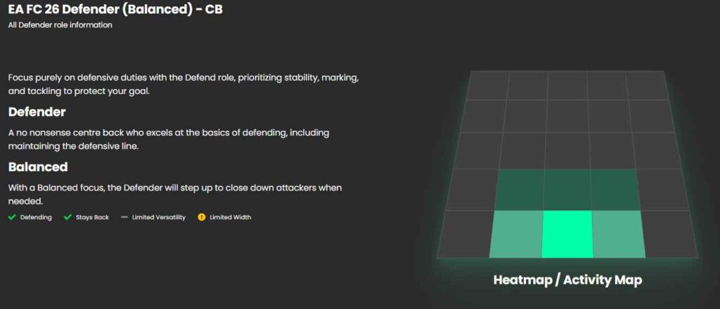 بهترین Player Role برای مدافع میانی (CB) در بازی FC 26