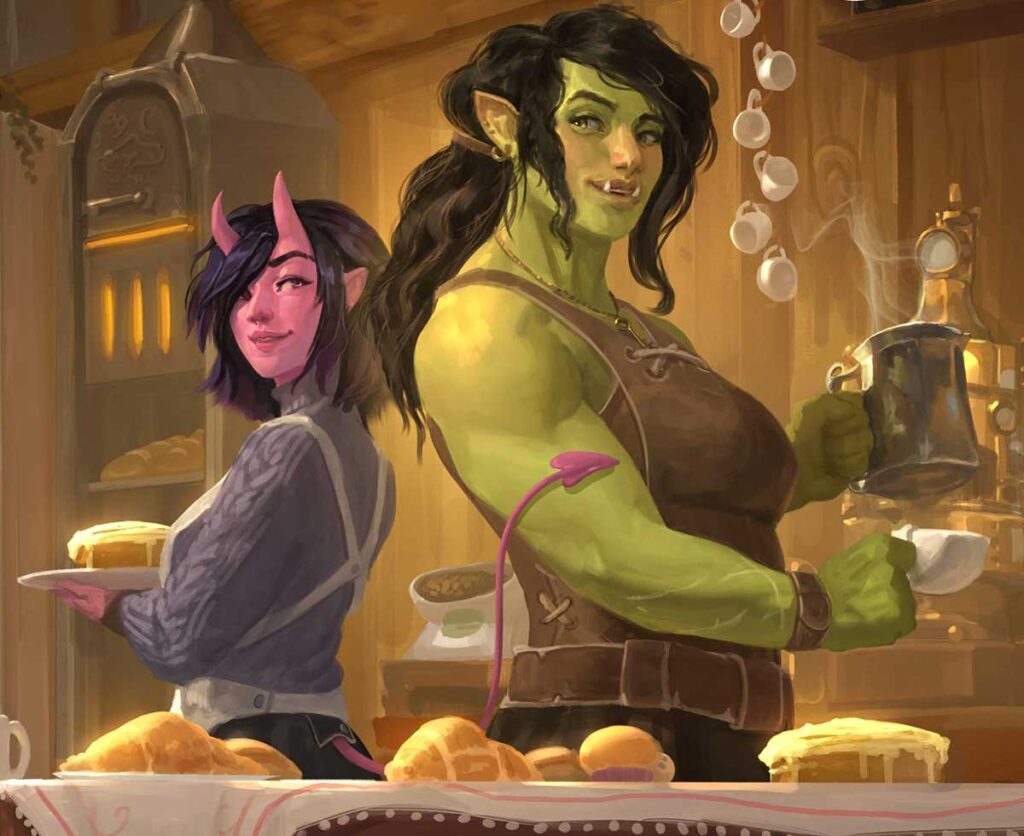 اگر بخشهای مورد علاقه شما وقتی که به هاگوارتز سر میزدید، مهمانیهای پر زرق و برق و خوشگذرانی در هاگزمید بود، پس »افسانهها و لاتهها« (Legends & Lattes) تراویس بالدری نظرتان را جلب خواهد کرد. در این اثر فانتزی، یک اُرک به تصویر کشیده میشود که مسیر جنگاوری را کنار میگذارد و تصمیم میگیرد تا یک کافیشاپ باز کند. بدین گونه، خوانندگان وارد اثری پر از خوردنیهای خوشمزه تازه از تنور درآمده، نوشیدنیهای داغ و مشتریهای جذاب میشوند که بدون این که به سراغ خطرات معمول خیالپردازیهای حماسی بروند، خلا فانتزیشان را پر میکنند. به جای این دست تهدیدها، «افسانهها و لاتهها» صفحات خود را با شوخیهای سرگرمکننده، روابط عاشقانه جوانهزده و پخت و پز پر میکند.