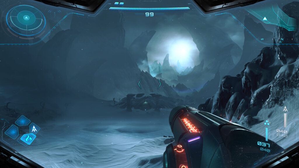 با این حال بگذارید از نقاط قوت بازی شروع کنیم. Metroid Prime 4 هنگامی که به ساختار نسخههای پیشین وفادارتر میماند، بازی واقعا سرگرمکنندهای است. بهغیر از منطقه ابتدایی و نهایی بازی، پنج منطقه اصلی در بازی وجود دارند که شخصا از گشت و گذار در هر پنجتایشان واقعا لذت بردم. از جنگلهای Fury Green گرفته تا آزمایشگاههای غرق در برف و بوران Ice Belt و کارخانههای Volt Forge در کل همان تجربه اتمسفریکی که از متروید پرایم انتظار دارید را فراهم میکنند. هرچند که بعید میدانم MP4 یک بازیکن قدیمی مجموعه یا حتی یک مترویدونیا باز را غافلگیر کند، اما باز هم نمیتوان انکار کرد که گشتن در این مراحل و پیدا کردن رازهایشان وقتی که قابلیتهای بیشتری بهدست آوردهاید لذت زیادی دارد. این موضوع وقتی حتی مطرحتر میشود که با وجود نیاز به بازگشتهای مکرر به هر منطقه و همچنین عدم وجود سیستم فست تراول، باز هم میبینید که طی کردن مسیرهای قدیمی همچنان تکراری نمیشود.