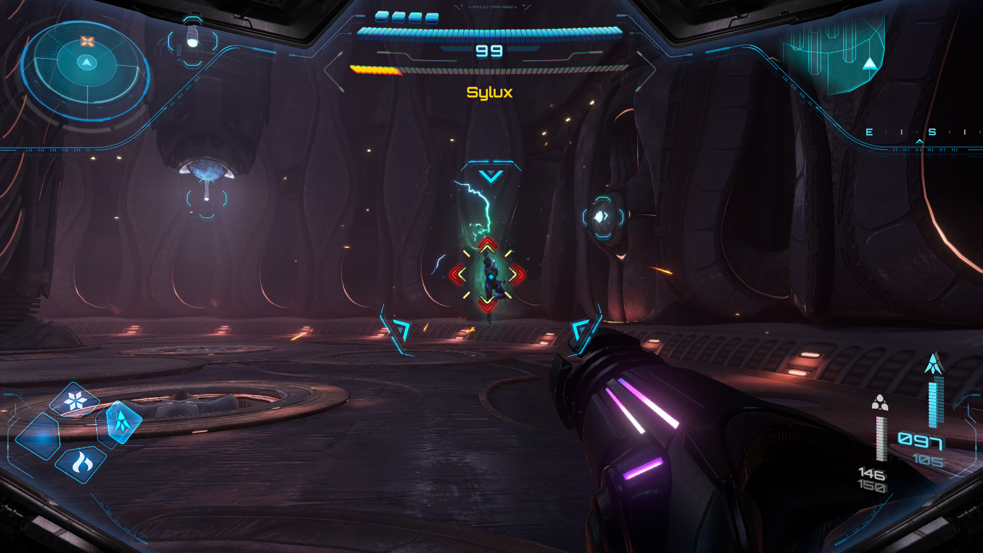 دیگر انتقادی که به داستان دارم راجع به آنتاگونیست اصلی آن یعنی سایلاکس است. یادتان هست که گفتم داستان این بازی مستقل از تمام بازیهای دیگر مجموعه است؟ خب این همچنان اشتباه نیست، اما ظاهرا سایلاکس قبلا در برخی از بازیهای فرعی متروید حضور داشت و از قبل هم به حضور او در Metroid Prime 4: Beyond اشاره شده بود. با این حال من هیچگاه متوجه نشدم انگیزههای این شخصیت و دلیل دشمنیاش با سموس چیست. او بهندرت در داستان حضور دارد و تقریبا کاری به جز صدا زدن نام سموس با خشم و حمله به او کاری انجام نمیدهد. در صورتی که بازی را بهطور ۱۰۰٪ بهاتمام برسانید، در انتهای بازی صحنهای نمایش داده میشود که گذشته این شخصیت را توضیح میدهد. اولا که خب، چرا؟ چنین چیزی چرا بهجای اینکه در طول بازی فاش شود، باید پاداش بازیکنی باشد که زحمت ۱۰۰٪ کردن بازی را به جان خریده است؟ دوما اینکه حتی با دیدن این میانپرده هم در نهایت نمیتوانید سایلاکس و انگیزههایش را جدی بگیرید. سوما که… این یکی را نمیتوان بدون لوث کردن داستان توضیح داد، اما در این حد میگویم که حتی اختتامیهای هم برای او وجود ندارد و ظاهرا در آینده هم با او کار خواهیم داشت. نتیجه این است که سایلاکس در این بازی چیزی جز یک «هِیتر» که هر از گاهی مزاحمتان میشود نیست.