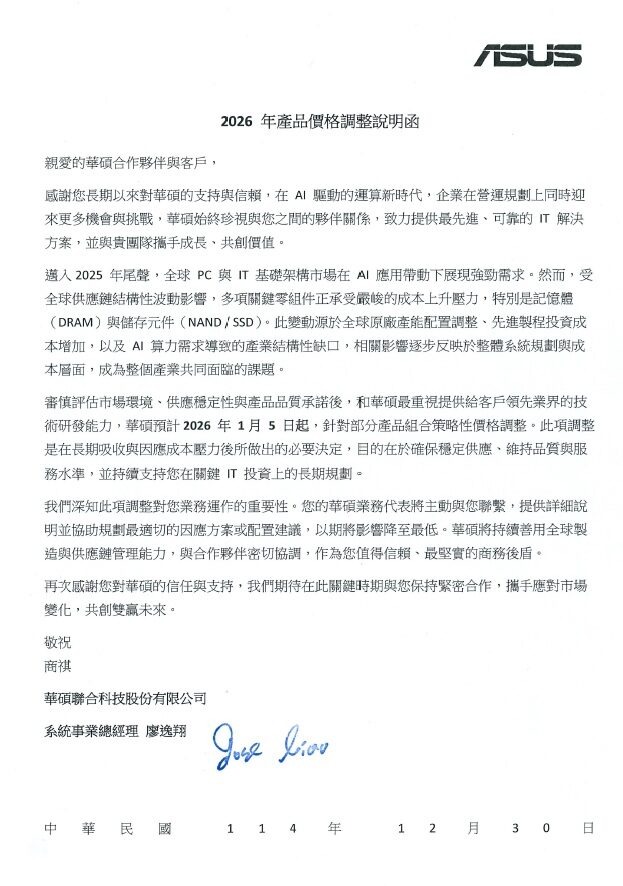 ایسوس رسما اعلام کرده است که از ۱۵ دی قیمت برخی محصولات خود را افزایش میدهد. دلیل اصلی این تصمیم، رشد سریع تقاضا برای فناوریهای هوش مصنوعی و فشار ناشی از آن بر زنجیره تامین جهانی عنوان شده است. افزایش هزینه قطعات کلیدی مانند حافظه DRAM و ذخیرهسازهای NAND / SSD از مهر ماه آغاز شد و اکنون تاثیر آن به شکل مستقیم در برنامهریزی سیستمها و ساختار هزینهها دیده میشود.