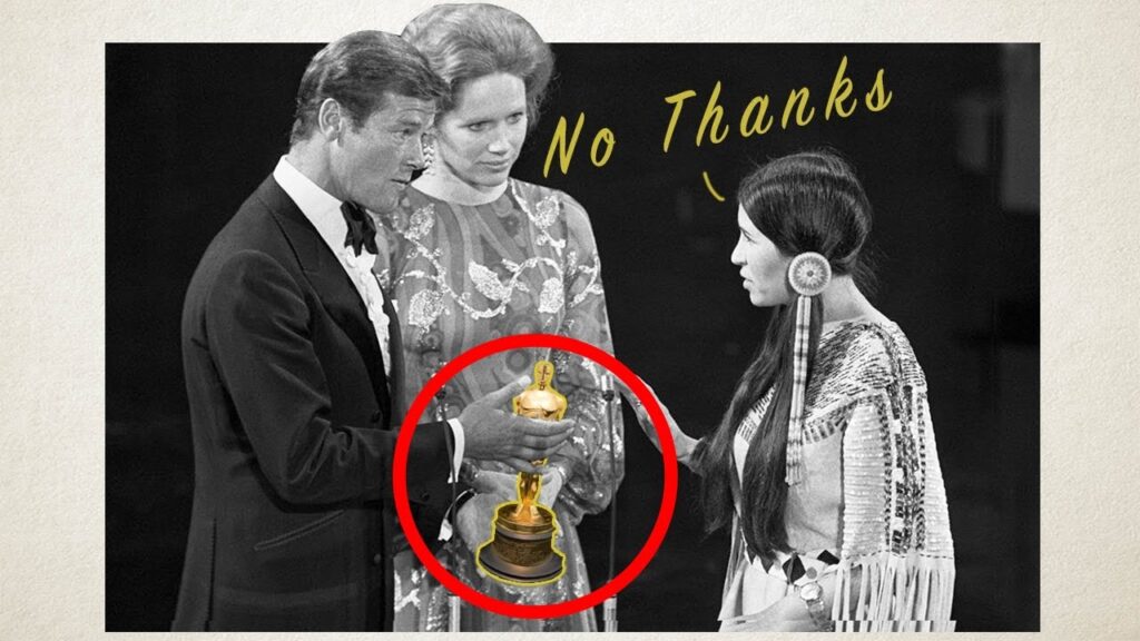 مارلون براندو با دانستن ماجرای قتلعام معترضان جریان Wounded Knee که به موجب آن «در روز حادثه با خیال اینکه سرخپوستان در حال آماده شدن برای نبرد با ارتشیان هستند و با شلیک اشتباهی توسط بازرسان ارتش هنگام خلع سلاح سرخپوستان در کمپ، ارتشیان شروع به تیراندازی به سرخپوستان کردند که در نتیجه آن ۱۵۰ تا ۳۰۰ تن از سرخپوستان شامل بر: ۹۰ مرد و ۲۰۰ تن زن و کودک کشته شدند.» (ویکیپدیا فارسی) و با کمک اطلاعات و کتابهای رفرنسی که پیشتر از مراسم اسکار از طرف «لیتلفدر» به او رسیده بود، متوجه بدرفتارهای افراطی که در حق بومیان آمریکایی میشود و به نقطهای از کنجکاوی میرسد تا بیشتر بخواند و در نهایت از تریبون اسکار پیام آشکارش را برساند.
