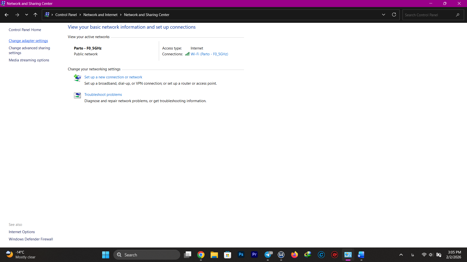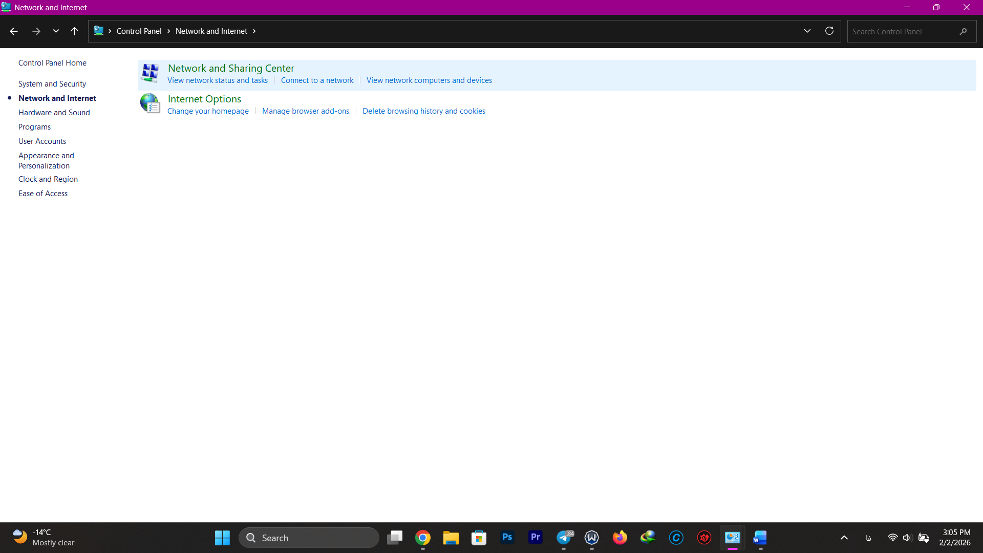 سپس وارد Control Panel شوید و از بین سربرگهای موجود، Network and Internet را انتخاب کنید.