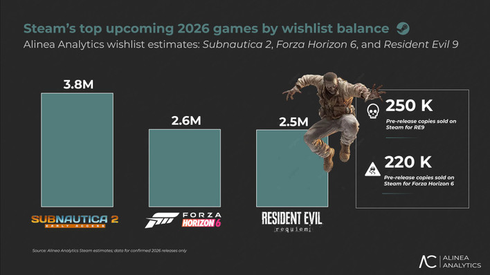 طبق دادههای منتشرشده توسط Alinea Analytics بازی Subnautica 2 یکی از بیشترین تعداد ویشلیست در استیم را بین عناوین سال ۲۰۲۶ دارد. مطابق با آمار، این بازی با ۳.۸ میلیون ویشلیست، فاصله چشمگیری با دیگر رقبا ایجاد کرده است. این رقم ۱.۲ میلیون نفر بیشتر از بازی Forza Horizon 6 و همچنین از بازی Resident Evil Requiem با ۲.۵ میلیون نفر هم بیشتر است و مقام نخست را نصیب Subnautica 2 کرده است.