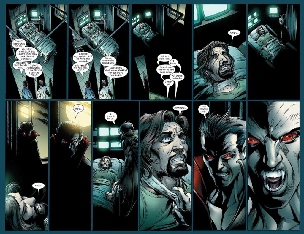 با این حال، تبدیل واقعی دکتر موربیوس زمانی رخ داد که او تلاش میکند با ترکیب دیاِناِی یک خفاش خونآشام با شوکتراپی به دنبال راه درمانی بگردد. با توجه به این که این اتفاقات در یکی از کمیکهای مرد عنکبوتی به وقوع میپیوندند، نتیجه آزمایش باعث میشود که او تبدیل به یک خونآشام زنده به همراه بسیاری از قابلیتها یک ومپایر شود.