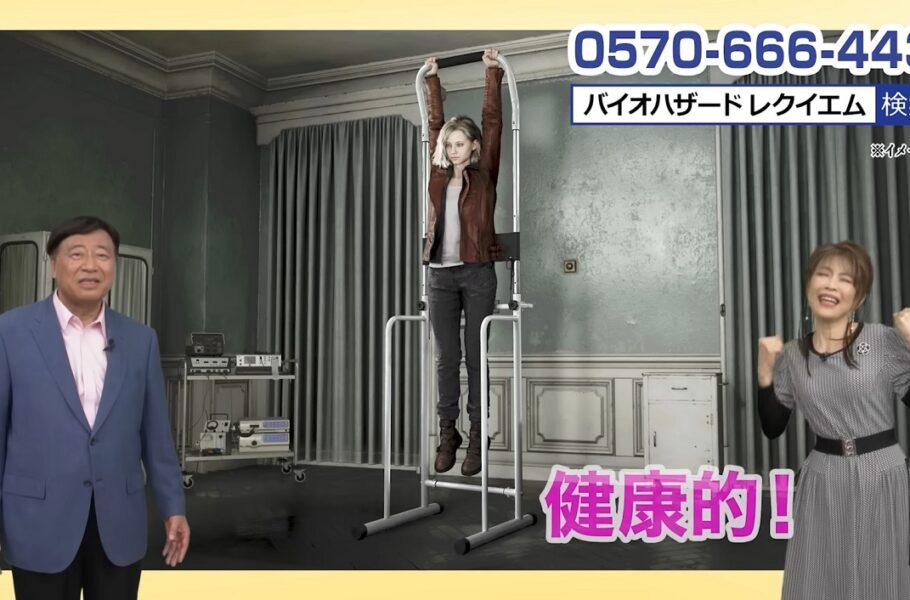 در تصاویر تبلیغاتی، شخصیت «گریس» در حال استفاده از بارفیکس دیده میشود. همچنین یک تیزر تبلیغاتی جالب منتشر شده که مجریان آن مستقیما داخل صحنههای بازی Resident Evil Requiem قرار گرفتهاند. در این ویدیو، مجریان ضمن بازدید از هتل Wrenwood با صحنههایی ترسناک و حتی «جامپاسکر» مواجه میشوند که فضای منحصر به فرد بازی را به خوبی به تصویر میکشد.