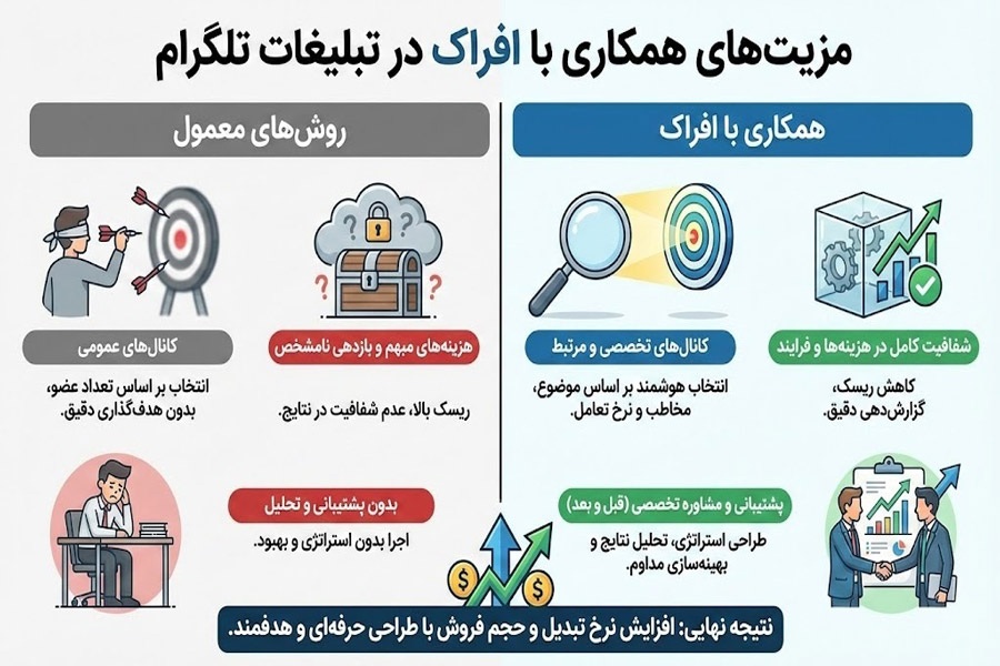 مزیت همکاری با افراک نسبت به روشهای معمول خرید تبلیغات تلگرام