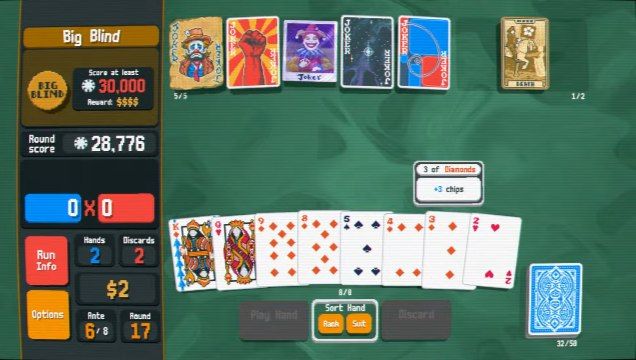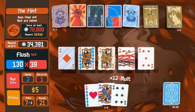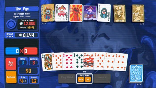 اما جادوی واقعی Balatro در گیمپلی آن است. بازی پایهاش را بر مکانیک پوکر کلاسیک بنا کرده، اما بهجای رقابت با بازیکنان دیگر، شما در مقابل امتیاز هدف هر مرحله قرار میگیرید. هر دور، باید با دستهای پوکری که میسازید، به حد نصاب امتیازی برسید تا به مرحلهی بعد بروید. با این حال، تمام چیزها در همان نقطهی آشنا باقی نمیماند. Jokers، کارتهایی ویژه هستند که تواناییهای خاص و اغلب عجیب به شما میدهند؛ از دو برابر کردن امتیاز گرفته تا ایجاد زنجیرههای دیوانهوار از افزایش چندبرابری. ترکیب درست این Jokers با استراتژی شما، تفاوت بین نابودی کامل و رکوردشکنی را رقم میزند.