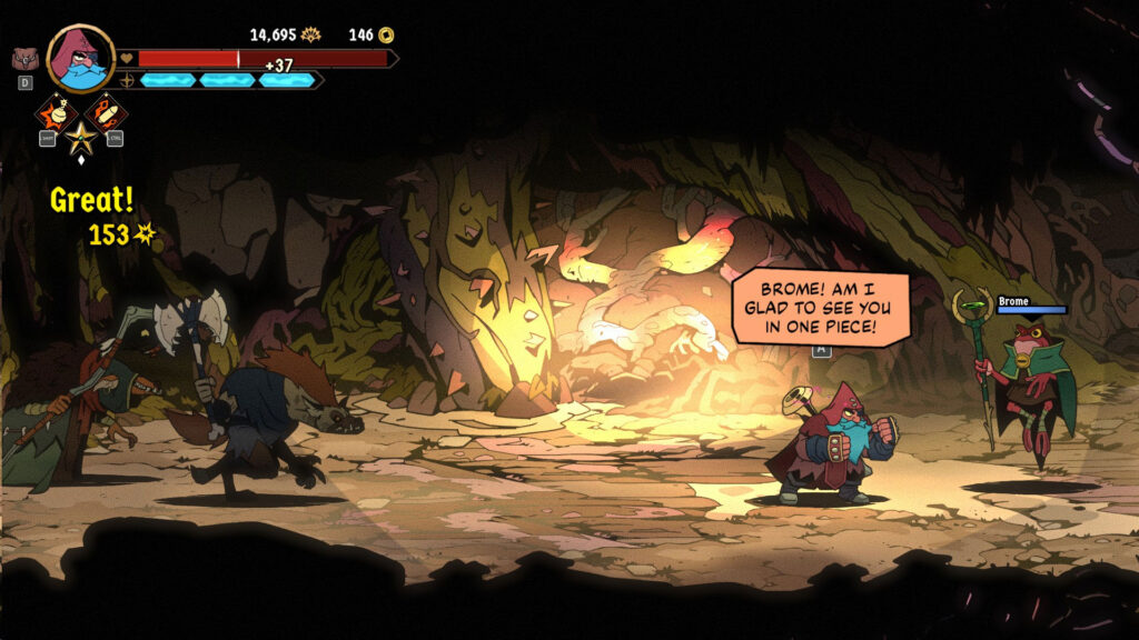 اگر دموی بازی را در فستیوالهای قبلی استیم تجربه کرده باشید. قشنگ میفهمید که سازندگان چه قدر از بازخوردها در هر بخشی استفاده کردهاند. مثلا حالا درجه سختی متعادلتر از قبل است و بیشتر آیتمهای سلامتی گیر میآورید. همچنین دوربین بازی هم دورتر شده تا تسلط بهتری برای محیطها داشته باشید و هر چه بیشتر از مناظر زیبا و پرجزئیات لذت ببرید. تازه تا اینجا تمام تعریفها از گیمپلی بود و هنوز چیزی از بقیه بخشها نگفتهام! هر چه قدر که Guard Crush Games برای گیمپلی سنگ تمام گذاشته، استودیوی Supamonks در بخش بصری و هنری خروجی چشمنوازی ارائه داده است. گرافیک دوبعدی بازی یکی از زیباترین آثاری است که امسال میبینید و به جرئت در کنار امثال سیلکسانگ و شینوبی قرار میگیرد. جزئیات شخصیتها و محیطها بالاست و انیمیشن بسیار نرم و روان هستند؛ حتی بهتر از «استریتز آف ریج ۴». همین جزئیات و نرمی انیمیشنها کمک میکند تا اجرای حرکات و وارد شدن ضربات را بهتر حس کنید. تنوع بالای مناطق با پالتهای رنگی متفاوت باعث میشود چشمهایتان خسته نشوند و بهخوبی حس سفر در یک سرزمین جادویی را جذب کنید.