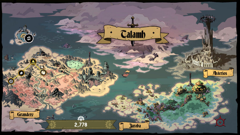 حالا وقت پرداختن به المانهای روگلایت است. این را هم گفتم که ساختار خطی و کلاسیک عناوین سبک Beat ‘em up را ندارد و هر جا که بمیرید، به جای شروع دوباره یک مرحله یک ران کاملا جدید را آغاز میکنید و به نقطه شروع باز میگردید. ساختار درختی پیشروی به این صورت است که در برخی مناطق، دو یا سه راهی مقابلتان قرار میگیرد و باید یکی را انتخاب کنید. در واقع بازی مجموعهای از محیطهای ثابت را به صورت شاخهای مقابلتان قرار میدهد؛ محدودتر از عناوین روگلایک که ساختار و چینش مراحل به صورت تصادفی خلق میشوند. پس از پاکسازی هر مرحله یک پاداش به صورت تصادفی دریافت میکنید که ممکن است یک آیتم یا یکی از واحدهای مصرفی داخل بازی باشد.