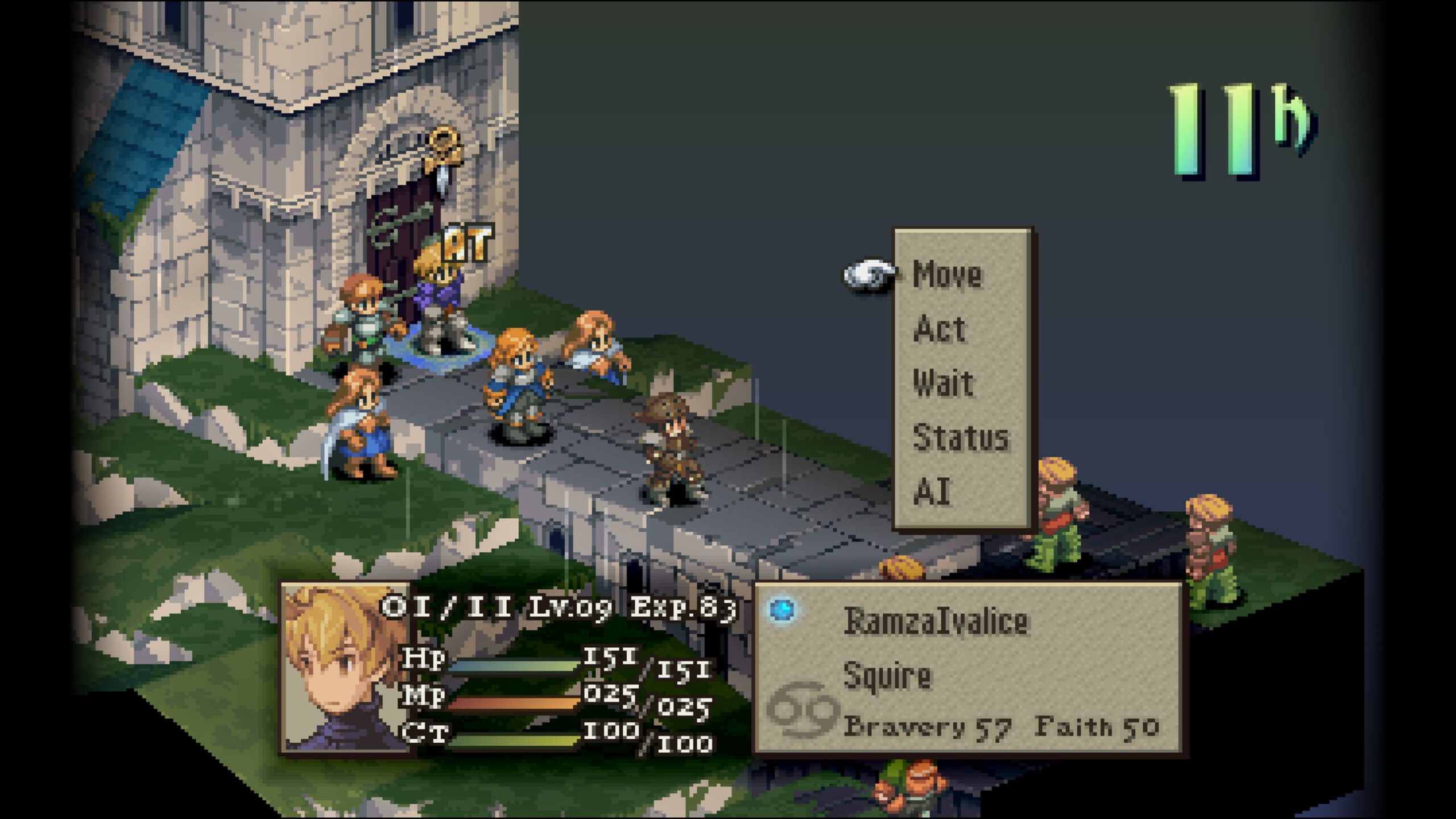 قصه Final Fantasy Tactics شنیدنی و جذاب است و دیالوگهای بازی هم به طرز عجیبی خوب است. ادبیات داستانی بازی به مانند قصههای انگلیسی ویکتوریایی است و همین موضوع هم باعث شده تا راحتتر با داستان بازی ارتباط برقرار کنید. از لحاظی بازی مسائل انسانی را هم به چالش میکشد. رمزا، همواره کشمکشهای درونی زیادی دارد و در مواجهه با اتفاقات مختلف باید تصمیمهای سختی بگیرد. مسائلی مثل خیانت، توطئه و اهمیت دوستی، در داستان بازی پررنگ است و همین درام عمیق باعث شد تا قصه این بازی برای من بسیار جذاب باشد.