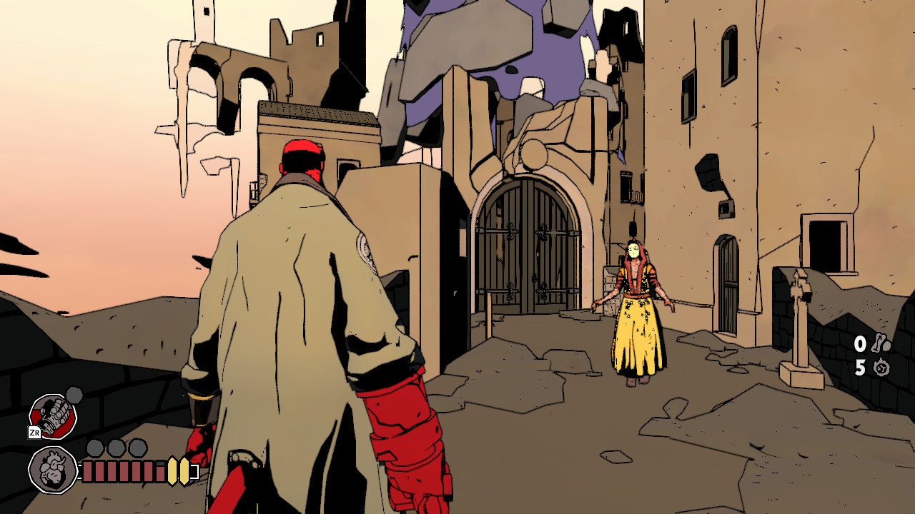 سبک مبارزات شما در بازی به چهار بخش تقسیم میشود: یکی همان دست سنگی (دست نابودی) هلبوی که اصل کاری است و میتوانید با آن ضربات سنگین و آرام را به دشمن وارد کنید. یکی دیگر تفنگ دولول بزرگ هلبوی است که از جنس ناقوس کلیسا است و گلولههایش از جنس نقره و با هر بار شلیک میتواند تا مغز استخوان هر شیطانی نفوذ کند. یک ضربه ویژه که با کمک دستان سنگی صورت میگیرد و در نهایت یک Amulet که میتواند در نبردها به کمک شما بیاید. در این میان امکان جاخالی دادن و یا سپر ایجاد کردن با دست سنگی هم دارید و این تمام راه مبارزه شما از اول تا آخر بازی با تک تک دشمنان کوچک و بزرگ و حتی Boss Fightها است. این را هم باید اضافه کنم که هلبوی میتواند اشیا سنگین و فوق سنگینی را نیز با یک دست از روی زمین بردارد و به سمت دشمنان پرتاب کند.